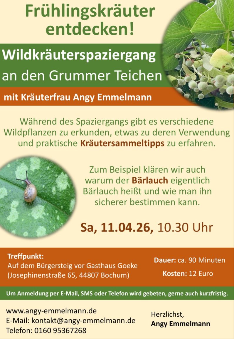 Zudem werde ich am Dienstag, 04.08.26, 10.00 - 12.00 Uhr, in Kooperation mit dem Seniorenbüro Wattenscheid eine Kräuterwanderung im Kruppwald anbieten.